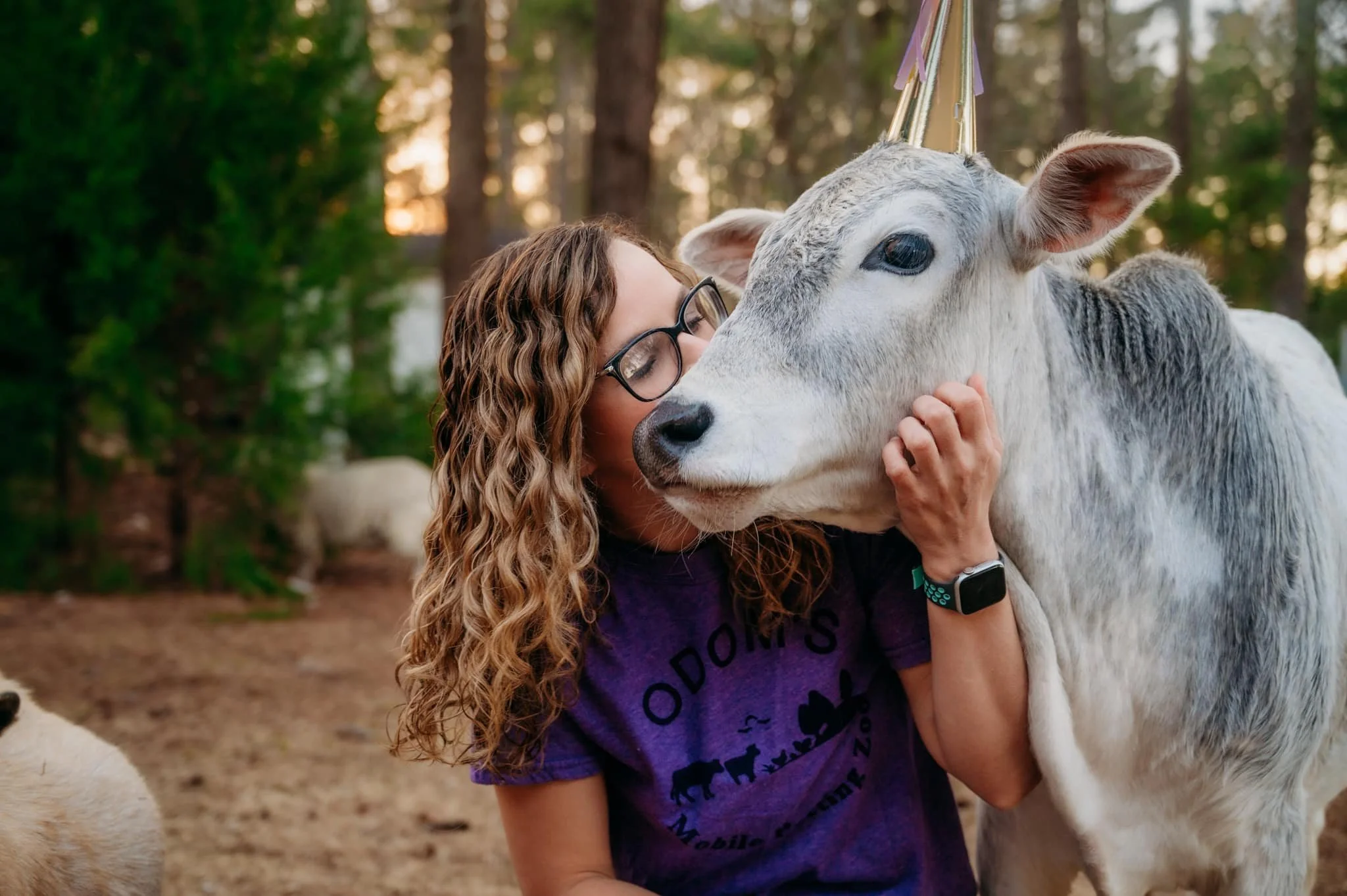 My name is Stanley also known as Stan the man or Stan the handsome man and I am a mini zebu cow. I was born December 27th, 2023 at muddy boots farm. My mommy bottle fed me, so now I am always up her butt (as she says) I am definitely her favorite, but just don’t tell the others. I shouldn’t get too much bigger than JOJO. I have a very ruff tongue and often times kids think I’m biting at them, which I promise I’m not, it’s just my tongue. Plus fun fact, I only have bottom teeth and not top teeth! I love coming to events and getting carrots and pets!